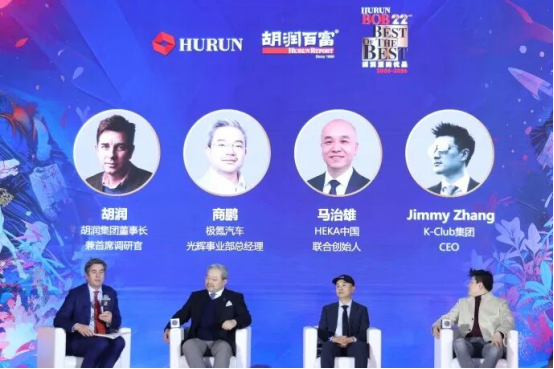 在消费更加强调体验交付与长期价值、品牌竞争从流量转向心智与信任的今天,“品牌向上”已成为高端品牌穿越周期、建立确定性增长的必答题。如何在保持高端调性的前提下实现有效触达,用内容与渠道创新放大品牌势能,并通过体验与服务沉淀可持续的品牌资产,也成为行业共同关注的核心议题。此次大会上,胡润集团董事长兼首席调研官胡润作为圆桌主持人,三位对话嘉宾极氪光辉事业部总经理商鹏、HEKA中国联合创始人马治雄、K-Club集团CEO Jimmy Zhang一同上台进行讨论。